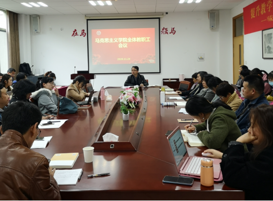 11月24日下午,肉漫画 召开全体教职工会议,专题传达学校当日上午召开的二级党组织书记与党群部门负责人会议精神,会议由学院党委书记、院长贺武华主持。贺武华依次传达了校党委副书记黄建新关于中央政治局第二十一次集体学习会议和《关于加强高校党的政治建设的若干措施》精神的解读,校党...