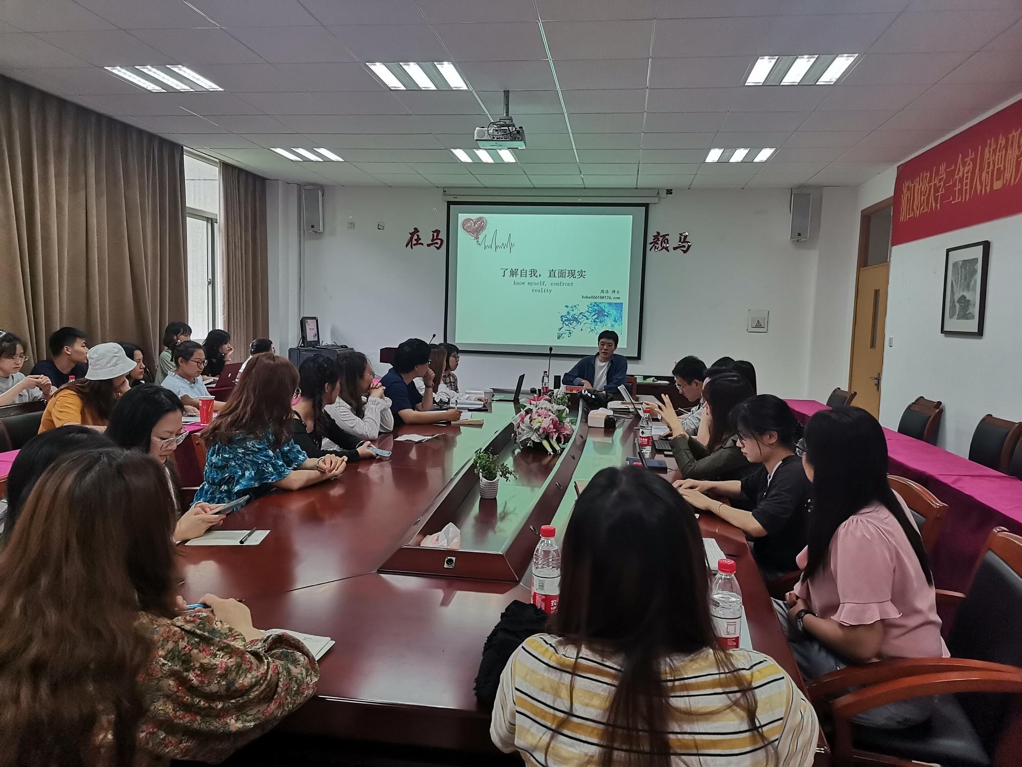 5月12日,肉漫画 于3号楼211会议室举办了“了解自我,直面现实”的心理学交流分享会,主讲人是青年博士周浩。肉漫画 辅导员王瑜,班主任杨晓帆、李芳园、程能的,研一研二全体学生参加了此次分享会。 分享会伊始,周浩博士点明此次会议的主题:人生中面临许多冲突,背后的...