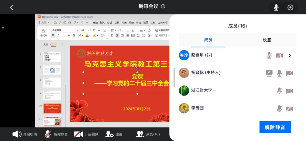教工第三党支部召开以“二十届三中全会精神融入思政课”的党课教育活动,此次党课由支部书记杨晓帆同志主持。