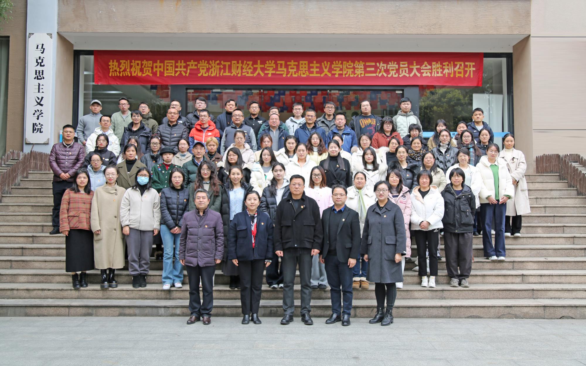 全体党员要以落实学校建设高水平财经大学和实施“新财经战略”为指引,以全面提高培根铸魂成效为主线,为学院高质量发展而努力奋斗,为一流财经大学建设目标贡献马院智慧和马院力量。