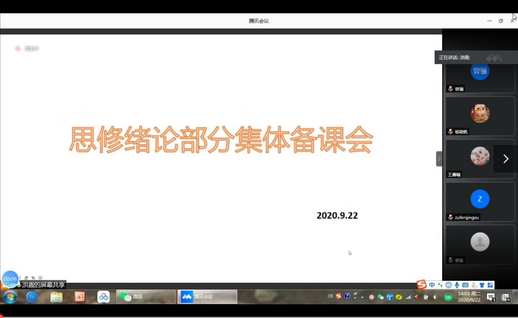 教研室主任王洪霞老师首先介绍了《思想道德修养与法律基础》课的基本情况,她主要围绕《思想道德修养与法律基础》教材性质与内容、课程目标、课程内容设置以及考核要求向各位老师作了具体说明。她指出,当前形势下,我们思修课老师要积极承担“立德树人”的责任,站好讲台,上好每一次课,做好“三进”工作,以不断提升思修课的教学效果。