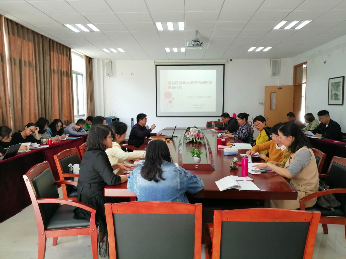 全体师生党生会聚一堂,学院党委书记华正学老师为大家上了一堂题为“迈向民族伟大复兴的国家治理现代化”的专题党课。