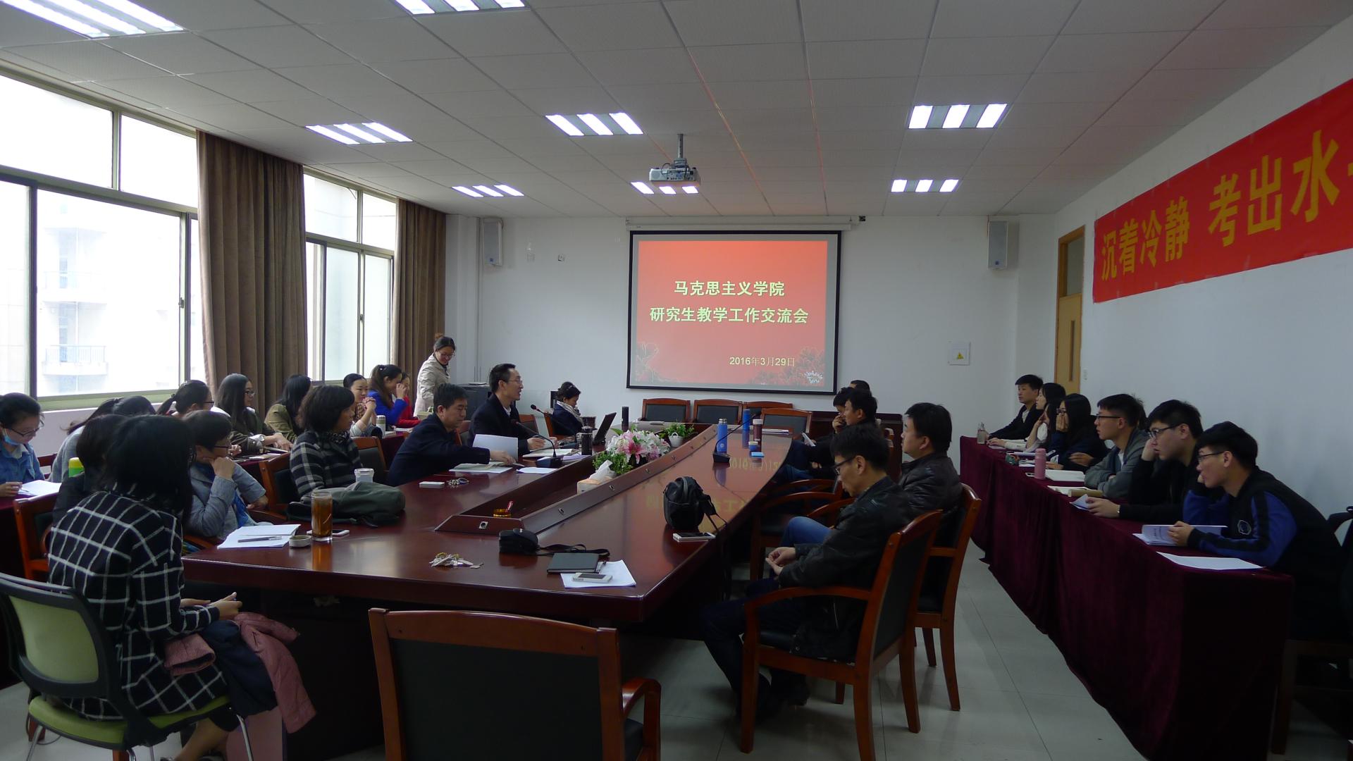 召开研究生教学工作交流会。华正学院长、何历宇副书记、全体硕士研究生导师和任课教师,以及2014级、2015级全体研究生参加会议。