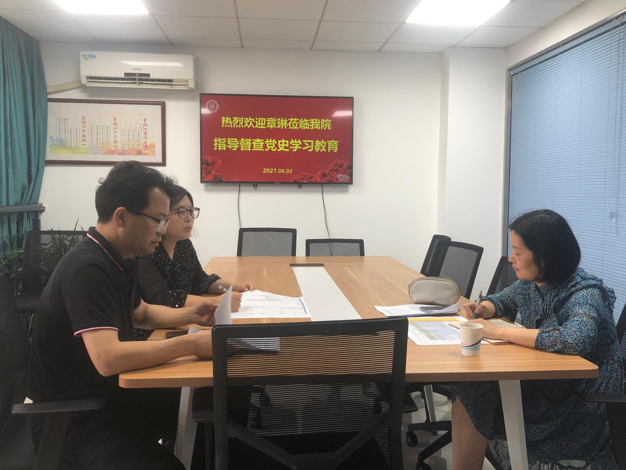 6月2日,学校党史学习教育第三督导组组长章琳莅临肉漫画 开展党史学习教育督查指导工作。肉漫画 党委书记、院长、党史学习教育领导小组组长贺武华汇报有关情况。