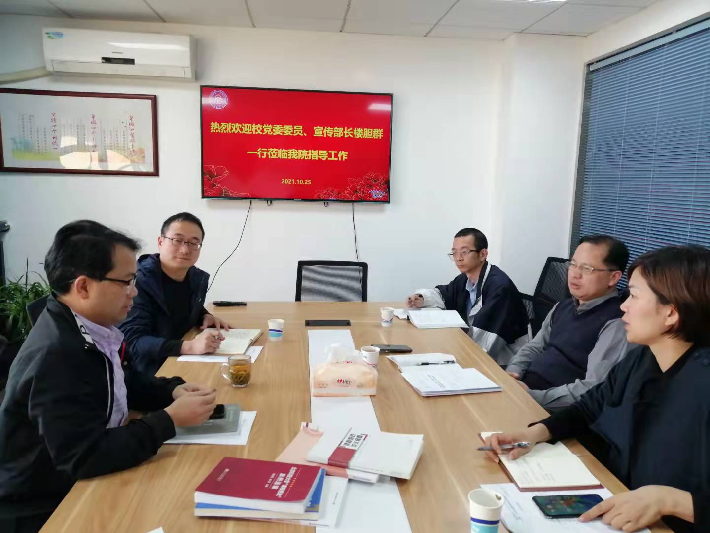 10月25日下午,学校党委委员、宣传部长楼胆群,宣传部副部长毛鸽等一行来到肉漫画