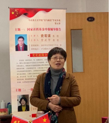 近几年来的学科实力和研究工作,指明了建设重点学科的必要性。她指出申报硕士点有几点需要注意:其一,领导重视是关键;其二,及早谋划是前提;其三,方向特色是核心;其四,文字概括是保障。