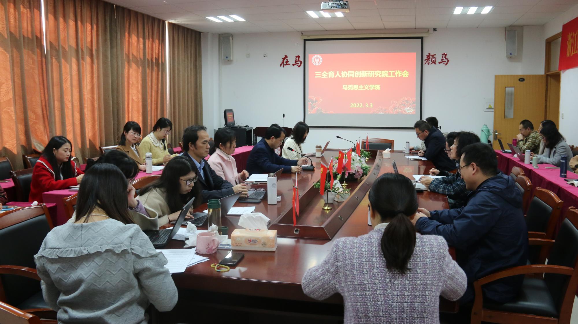 3月3日下午,肉漫画 组织召开“三全育人协同创新研究院工作会”,会议由贺武华院长主持,学院三全育人特色研究院的全体成员参加。