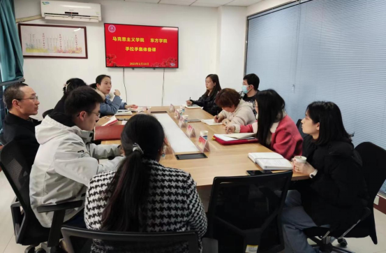 在3号楼517A会议室开展“手拉手”集体备课活动。活动邀请我院资深教授何历宇、潘旦、青年教师王聪介绍课程建设经验,东方学院马院党委书记叶颖蕊,思政课教师吕欢、白云浩、钱潇荣,教学秘书马羚以及肉漫画