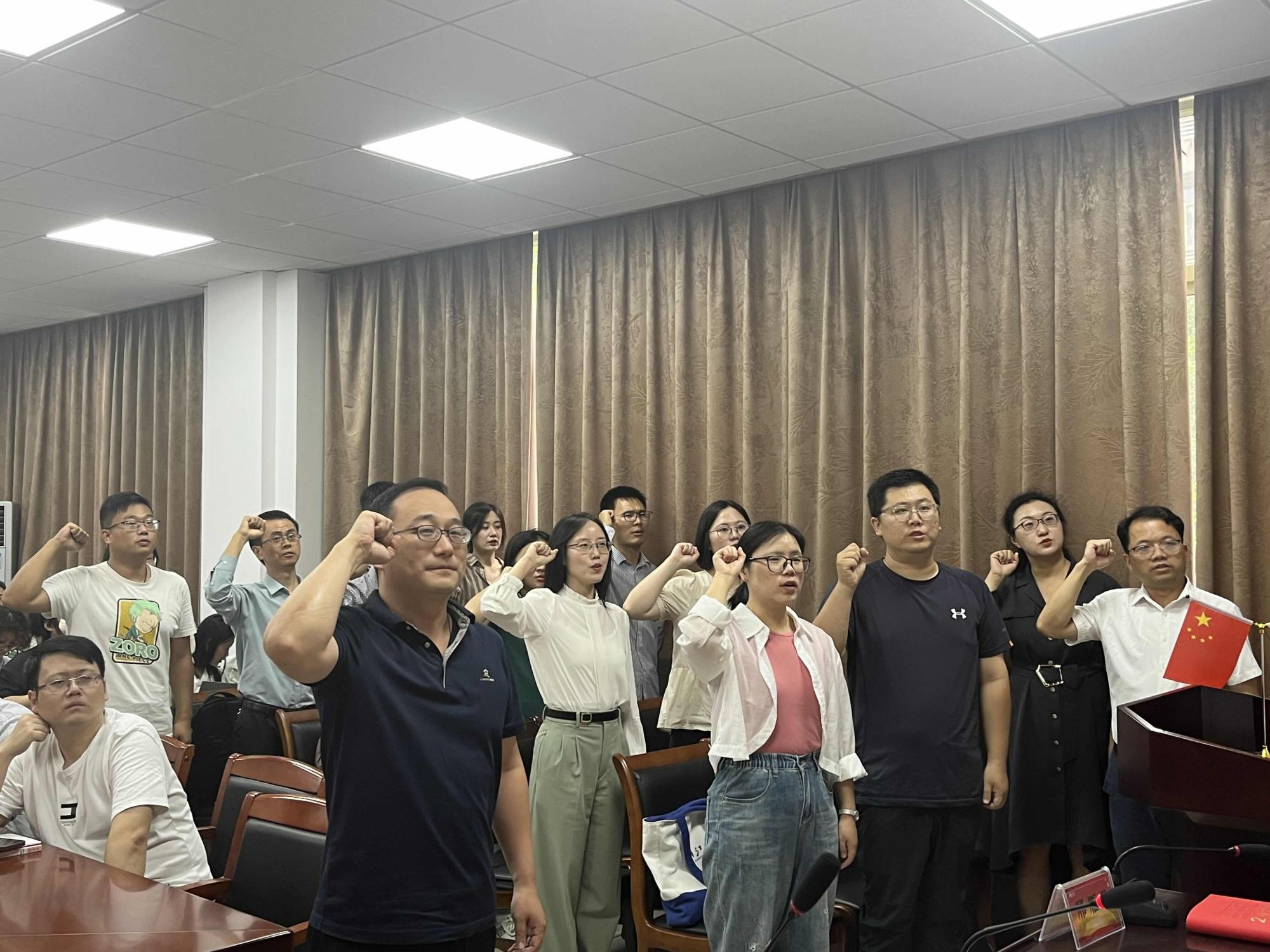 会议伊始,贺武华回顾了今年人才引进方面所取得的成绩并代表学院向各位新老师的加盟表示热烈的欢迎。每位新老师依次上台作了自我展示,叶健辉作为新教师代表发言。随后,全体新教师在党委书记刘向前的带领下进行庄严宣誓,表明了他们落实立德树人根本任务,为党育人,为国育才的坚定信心。