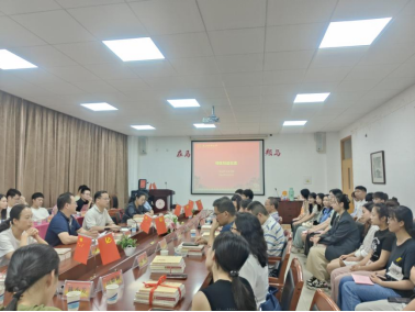 校党委委员,组织部部长、宣传部部长、统战部部长楼胆群作为导师代表为2023级研究生新生代表赠送书籍并佩戴校徽。