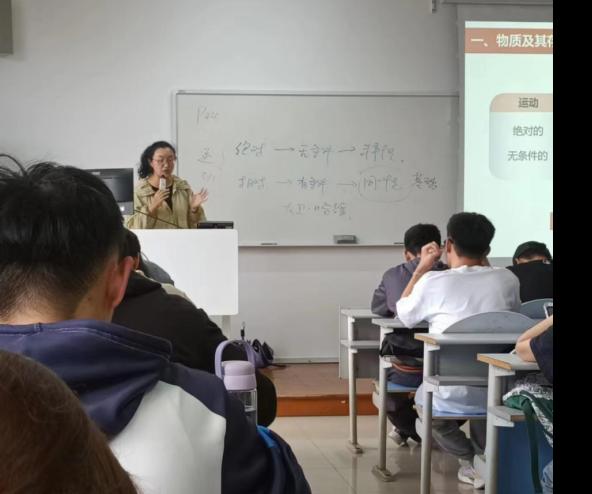 展示五:邢雁欣老师围绕马克思主义基本原理中世界的物质性及发展规律这一节的内容带领同学们从联系的客观性、普遍性、多样性等方面进行了详细的分析和讲解。通过课堂学习,帮助同学们掌握唯物辩证法的基本规律和根本方法,为树立科学的世界观打下理论基础。