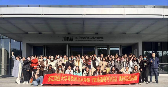 《思想道德与法治》课程组织了课程实践活动。冯庆旭老师与李意老师带领金融、外语学院部分学生前往浙江大学艺术与考古博物馆,开展了课外考察学习。