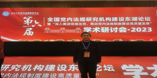 大会开幕式由湖北省委副秘书长、省委办公厅陈昌宏主任主持。湖北省委常务吴海涛秘书长、武汉大学党委书记黄泰岩教授分别致辞。大会主旨发言阶段,先后有来自复旦大学、湘潭大学、国家法官学院、武汉大学的11位专家学者做报告。大会共设中国共产党依规治党的实践成效与基本经验研究、完善党的自我革命制度体系研究和党内法规体系优化与执行力提升研究等三个分论坛。华正学教授在第一分论坛做“新时代中国共产党入党介绍人制度系统化、条例化的发展前景”的发言,获得与会专家学者的广泛好评。