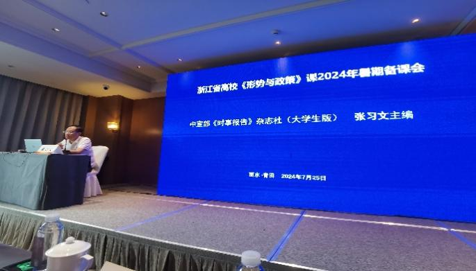 为更好推进《形势与政策》课教学,7月24日至28日,省高校“形势与政策”课教学研究分会在丽水青田县举办了全省高校2024年《形势与政策》课教师暑期备课会。我校邢雁欣、潘旦、李文生三位老师参加了本次集体备课。