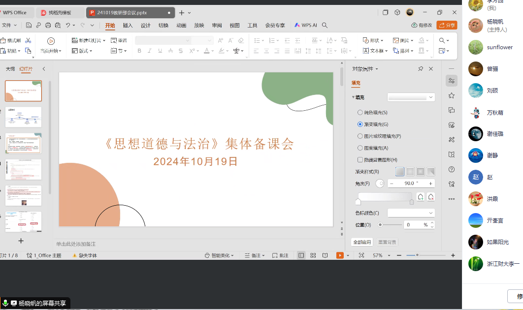 10月19日,《思想道德与法治》教研部召开集体备课会,备课会由教研部副主任杨晓帆主持。
