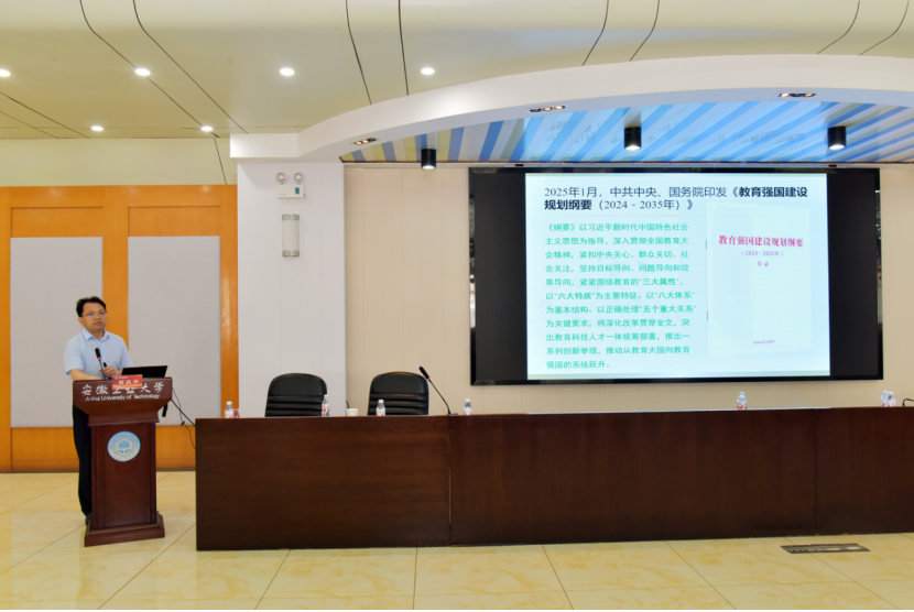 院长贺武华作题为“习近平文化思想视域下教育强国建设”的报告。报告指出建设文化强国事关中国式现代化建设全局,事关中华民族复兴大业,事关提升国际竞争力,是强国建设、民族复兴的强大精神力量。“明体达用、体用贯通”鲜明品格将经义与治事有机结合,对教育强国建设具有重大指导意义。习近平总书记对中华优秀传统文化的高度重视和充分自信,这是我们推进教育强国建设的底气与福音。教育强国立足于五千年中华优秀传统文化的自信,就会更加生生不息,更加开放包容,更加守正创新。