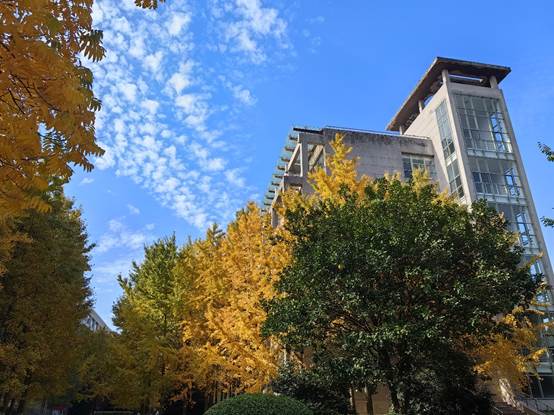 冬日的浙财校园,有种别样的美:银杏和梧桐叶子黄了,枫叶红了,落叶缤纷、阳光温暖、微风拂面。无论是北山坡上、校道两旁,还是学涯湖边、图书馆前,人们、猫咪、白鹅、鸟儿、小狗沉浸其中,时光仿佛静止了。