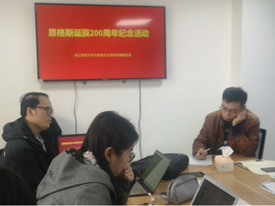 各位老师发言完毕后,大家纷纷进行了自由讨论,对恩格斯的生平、恩格斯与马克思的友谊、恩格斯的著作、恩格斯思想的当代价值、恩格斯的思想对当代中国实践的影响等内容进行了补充,一致认为要将纪念恩格斯200周年诞辰这个主题学习融入到思政课《马克思主义基本原理概论》的教学中,增进同学们对马克思主义、对恩格斯本人及其思想价值的认识。