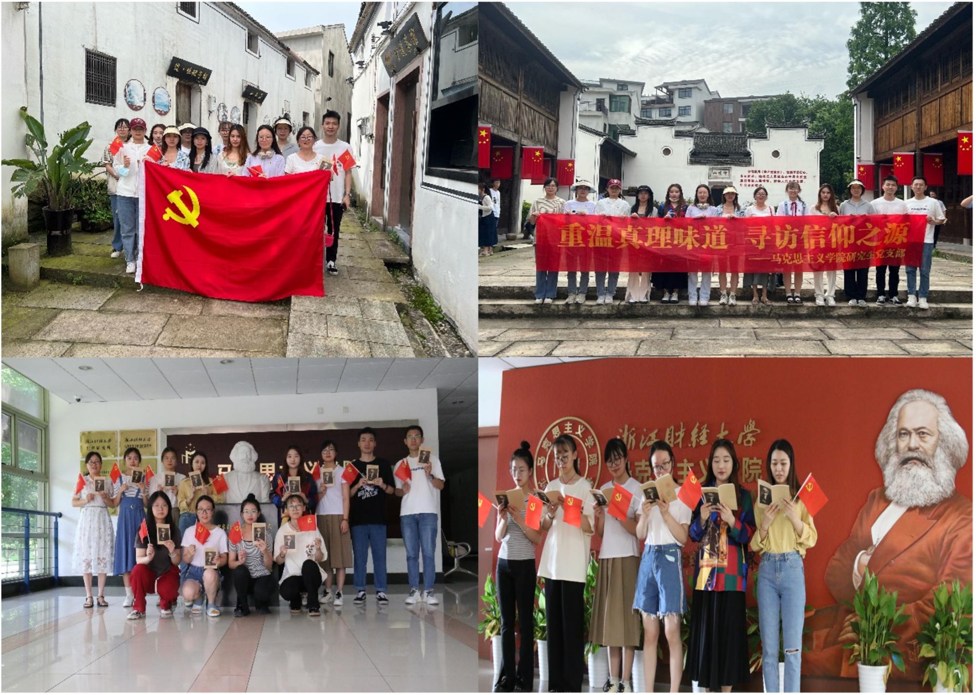 七一前后,研究生党支部开展“接力诵经典,热血迎七一”系列活动。活动由实践参观学习和经典著作诵读两部分组成。学生党员们通过前往陈望道故居参观学习,共同重温真理味道,寻访信仰之源。全体党员边走边听边看,追寻陈望道先生的革命足迹,品味“真理味道有点甜”的革命信仰。之后支部全体党员同志在学院楼马克思雕像前集体诵读《共产党宣言》,感受真理的力量。集体诵读之余,支部党员还以小组研读、接力诵读的方式展开学习,大家纷纷表示要反复学习《共产党宣言》,深入研究,不断从中汲取思想营养,坚定共产主义的理想信念。后续学院还将通过公众号推送系列诵读活动。