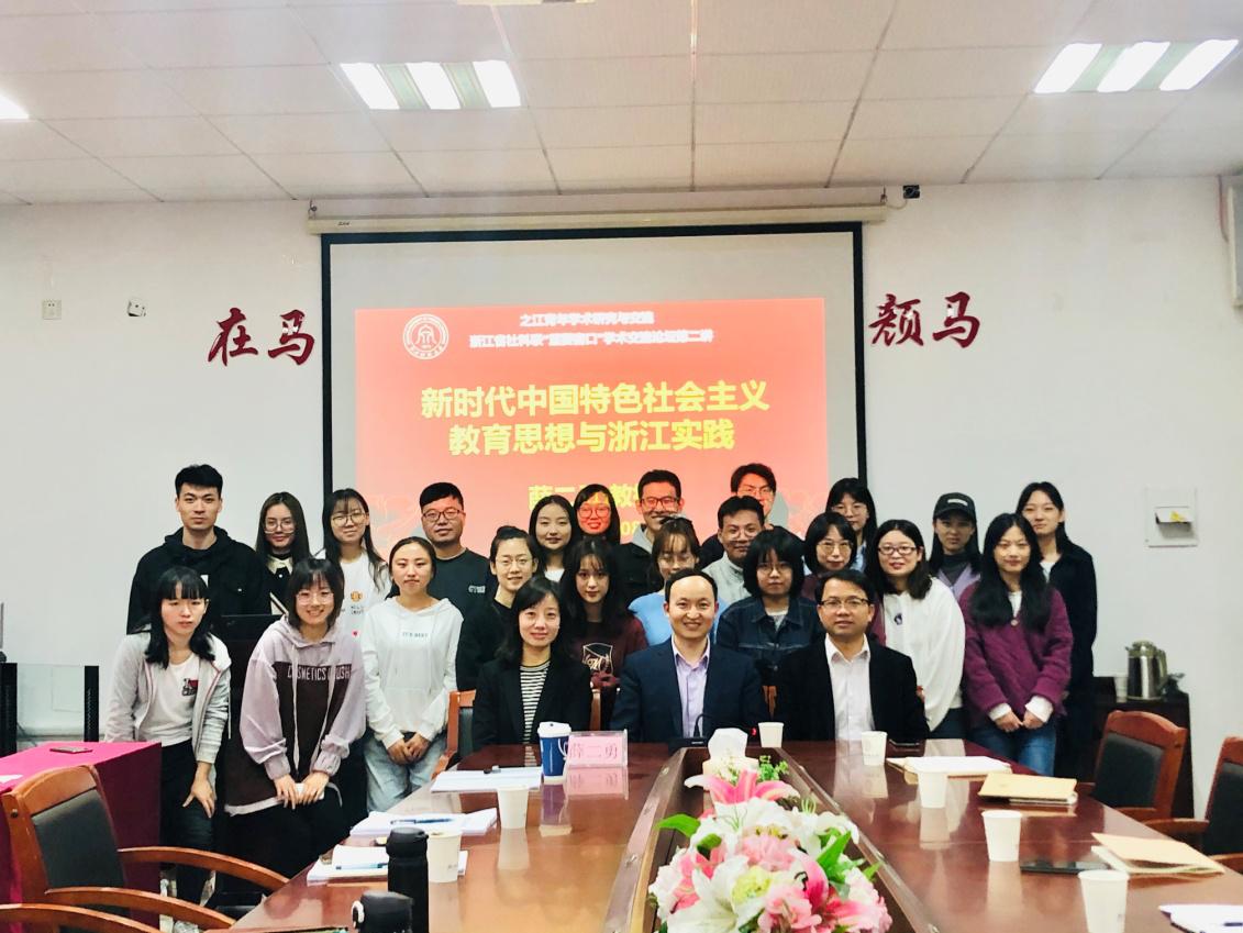 在3号楼211会议室举行“新时代中国特色社会主义教育思想与浙江实践”学术交流报告与录制工作。这是肉漫画