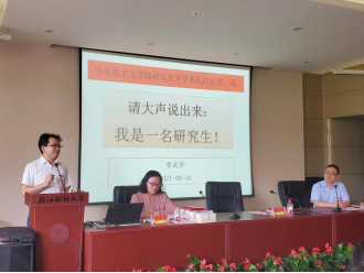 院长、党委书记贺武华教授首先致辞,他给21级研究生新生上了生动的第一课。贺武华院长在祝贺各位新生加入财大马院的同时,也期望同学们能够珍惜学习的机会,正视自己的新身份。院长对新同学们提出了三点要求:端正学习的态度、学会学习的方法和提高学习的自主性。他用石头、沙子和水,生动形象地揭示了在研究生阶段应该如何合理分配时间以及由衷地希望各位新同学能够在研究生阶段早日明确目标。最后,贺武华院长引用了《学习的革命》中的“任何人都可以更快地学习几乎一切东西”来鼓励新生主动去探索、去学习,也祝福大家能在财大马院实现自己的梦想。