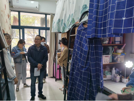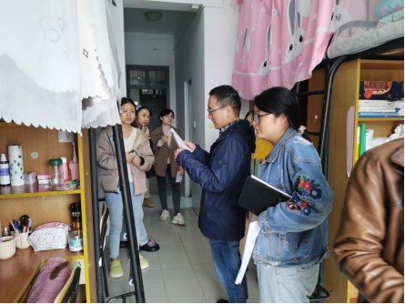 党委副书记、副院长刘向前、研究生辅导员王瑜、2020级研究生班主任杨晓帆以及2021级研究生班主任郑子律、程能的五位老师来到桃李苑3号楼和1号楼,参观同学们的寝室并对寝室环境进行打分。
