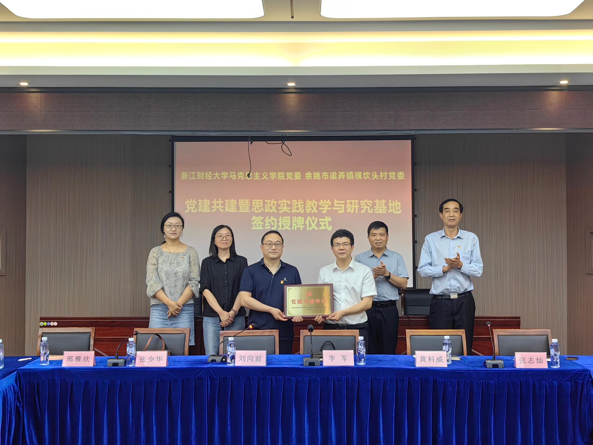 党委组织师生前往横坎头村、浙东(四明山)抗日根据地旧址开展学习贯彻习近平新时代中国特色社会主义思想主题教育,并与余姚梁弄横坎头村举行党建共建暨思政实践教学与研究基地签约授牌仪式。梁弄镇党委书记李军,横坎头村党委书记、村委会主任黄科威,肉漫画