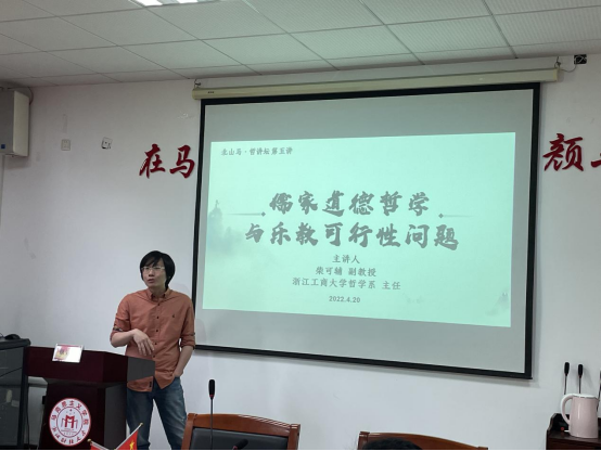 2022年4月20日下午,北山马·哲讲坛第五讲——《儒家道德哲学与乐教可行性问题》在3号楼211会议室举行,讲座由浙江工商大学哲学系系主任柴可辅副教授主讲。学院部分教师和伦理学专业研究生参加了本次讲座。柴老师从音乐入手,他认为,音乐是儒家思想的核心论题之一。儒家给予音乐两重语义的分疏:从...