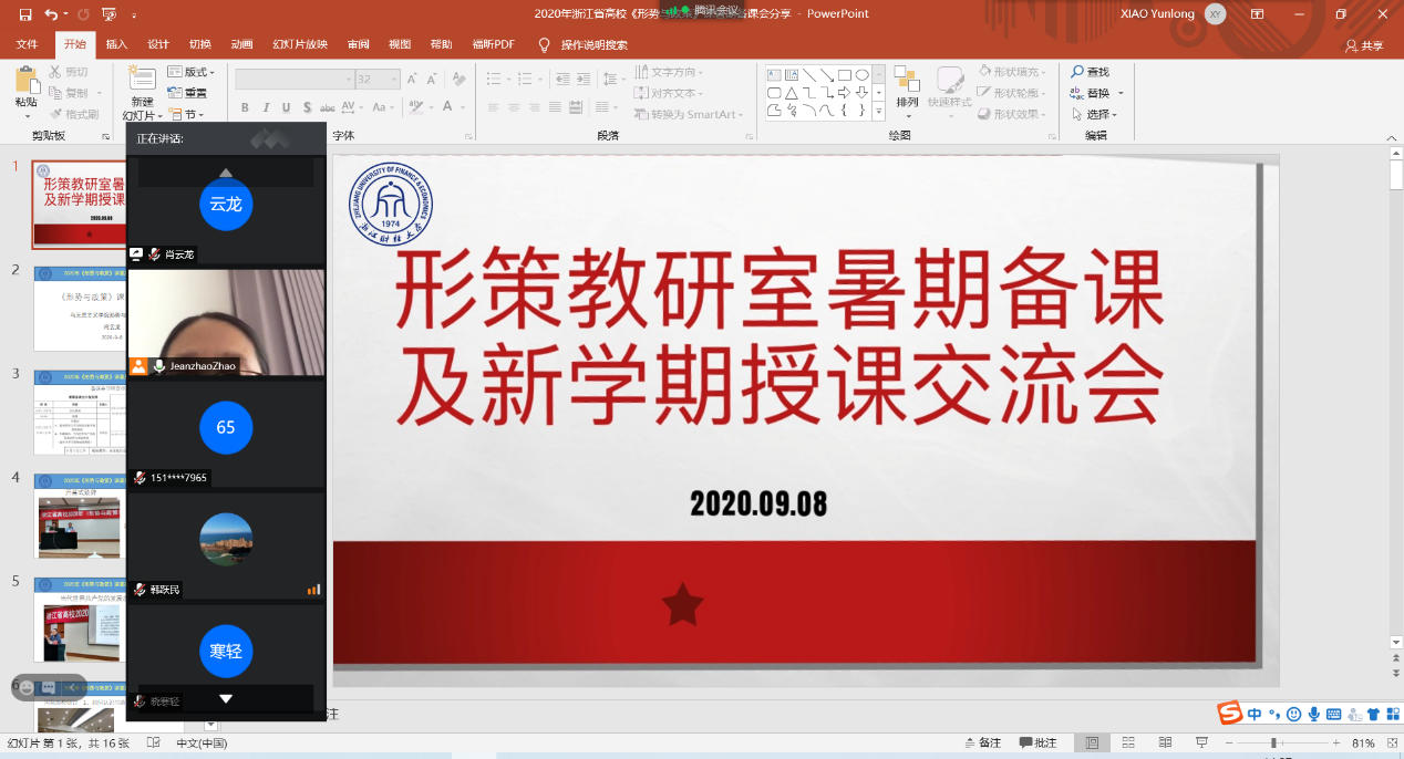 为进一步贯彻落实习近平总书记关于加强高校思想政治理论课建设的指示精神,践行高校思政课“立德树人”的理念,推进高校形势与政策教育,提高课程教学效果,肉漫画 形势与政策教研室于9月8日召开“暑期备课暨新学期授课交流会”,课程教学团队33名教师参加了线上会议。教研室主任赵春珍老师主持本次会...